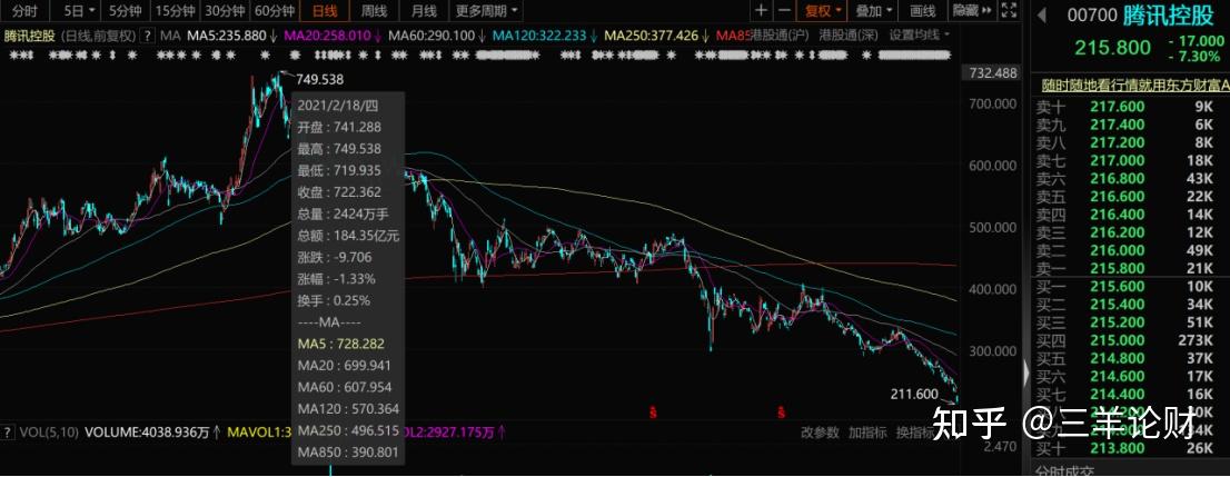 从2021年2月18日到今天2022年10月24日,作为全球超大型互联网公司,腾讯股价从749跌到今天最低211,这种膝盖斩上次发生虽然不远,但是要知道,这个可是腾讯啊,国内最顶尖的互联网公司,全球顶级的互联网公司,什么原因导致股价如此走势?