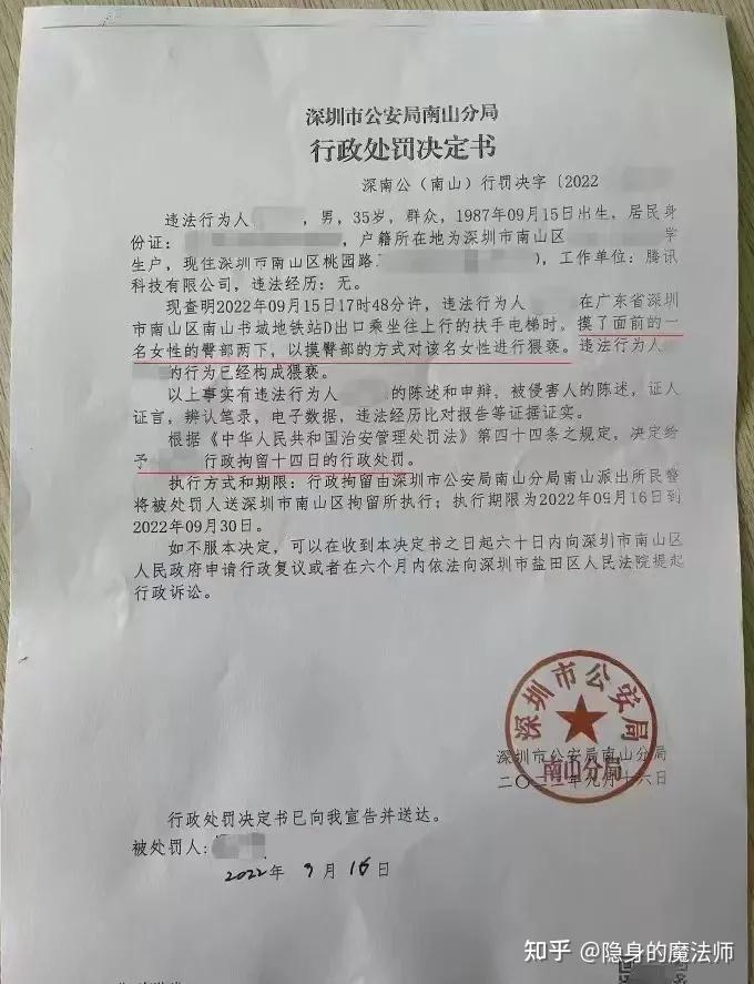 摸两下屁股,拘留14日!”广东深圳,9月15日下午5点48分,35岁的男子吕某在当地某地铁口,搭乘上行的扶手电梯出站时,触摸了前面一位女性的臀部两下。该女子没有隐忍,选择立即报警。当地警方迅速介入调查,认定吕某以摸臀部的方式猥亵他人。