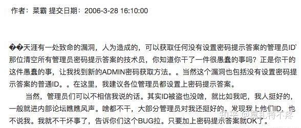 就在天涯官方束手无策的时候,菜霸又发了一条帖子,他在帖子中向所有网友炫耀着自己的战绩,另外,他还在帖子中指出了天涯的系统漏洞,并给出了解决方案。