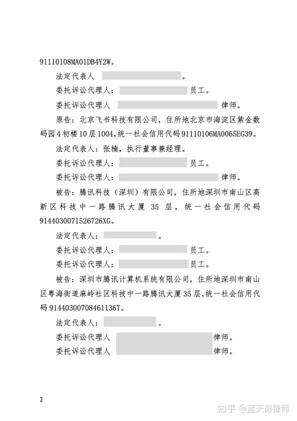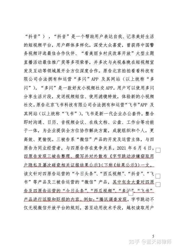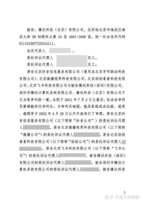 此次案件原告方为包括北京抖音信息服务有限公司在内的四家公司,被告为腾讯科技(深圳)有限公司、深圳腾讯计算机系统有限公司和腾讯科技(北京)有限公司。