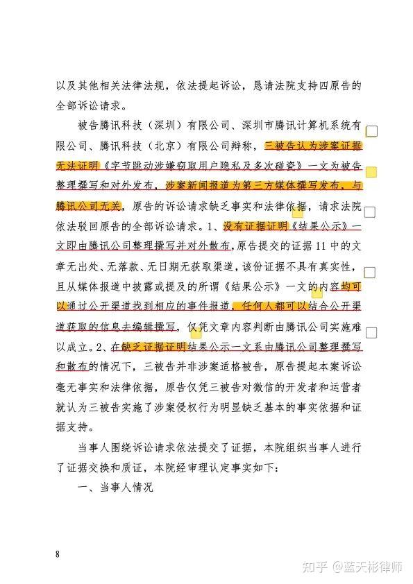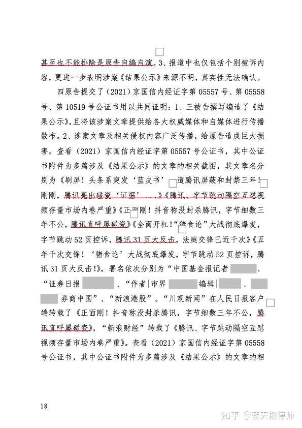但原告方抖音方面认为,《结果公示》中的内容均为不实内容,且所谓的“腾讯整理的事实资料”都是仅有当事人掌握的非公开的材料,但却被被告以《结果公示》这篇文章提供给各大媒体和自媒体进行传播。