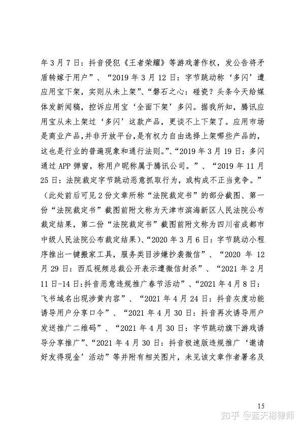 腾讯还表示,而且报道中并未明确这些内容是通过什么渠道获得的材料,更未明确是从腾讯公司授权或发布的,这些内容都是此前媒体的公开报道,任何人都可以以腾讯公司的口吻撰写而成,甚至不能排除是原告抖音方面自编自演。
