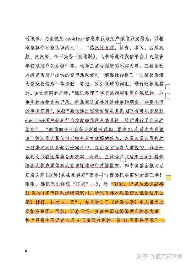 多家媒体在报道中曾写道诸如:“从腾讯获取一份31页的资料,显示字节跳动涉嫌窃取用户隐私”的内容。