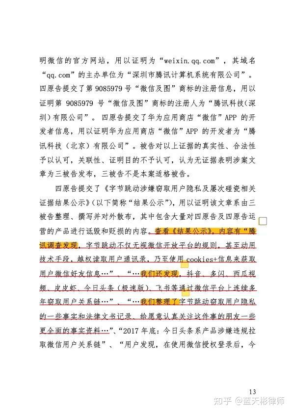 为此,抖音将腾讯告上法庭,认为媒体报道中的失实内容来源于腾讯公司,是腾讯公司提供失实材料给媒体诋毁贬损抖音产品。