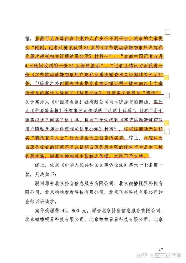 因此,11月30日,深圳市南山法院认为抖音提交的证据不足以证明侵权行为是由腾讯实施,相关主张缺乏依据,不予支持并驳回诉请。
