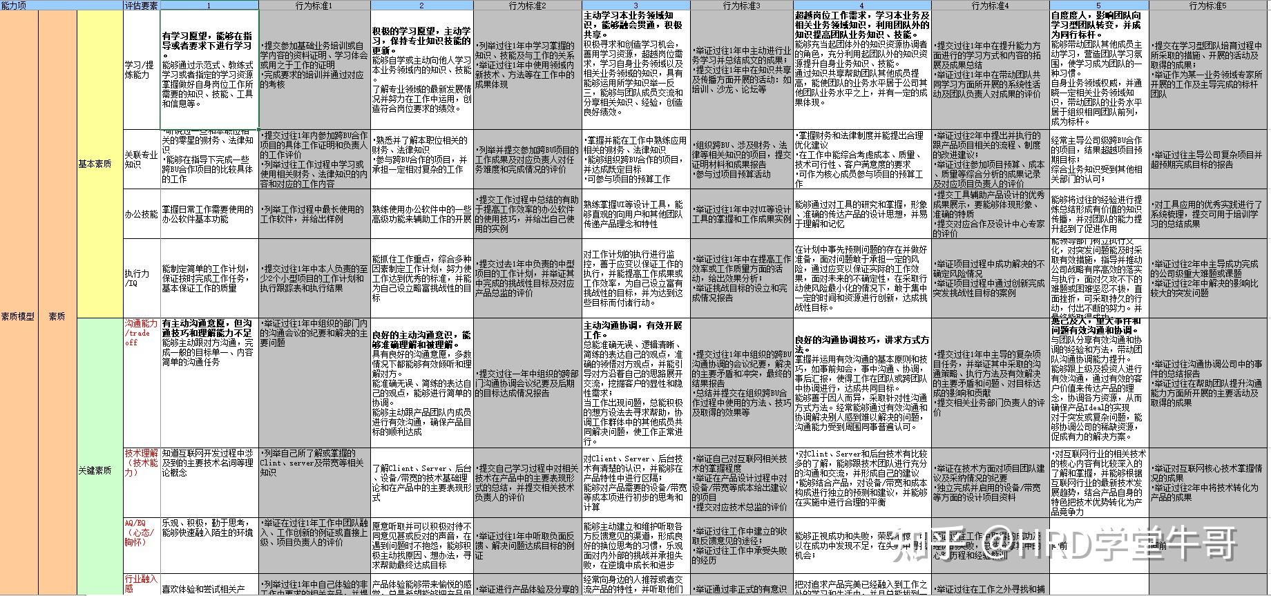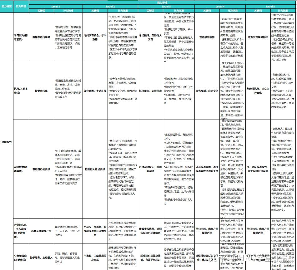 5.1、产品经理关键素质点标准定义