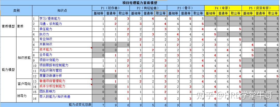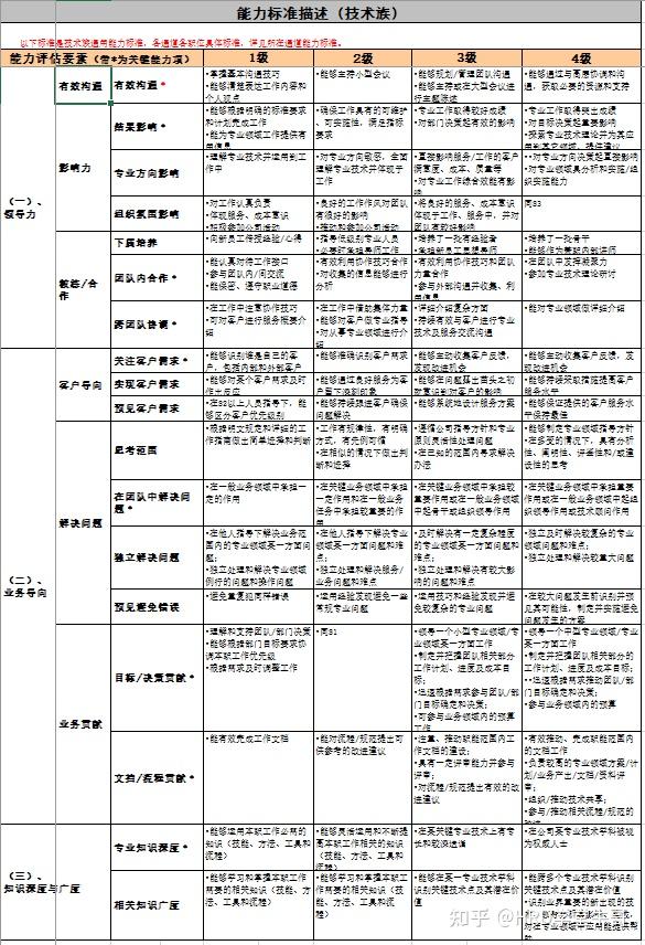 ,为前5个等级建立了包含素质、知识技能、客户导向、领导力4部分的能力素质模型,在这4个部分上,不同通道的考察点既有相同之处,更有所区别。