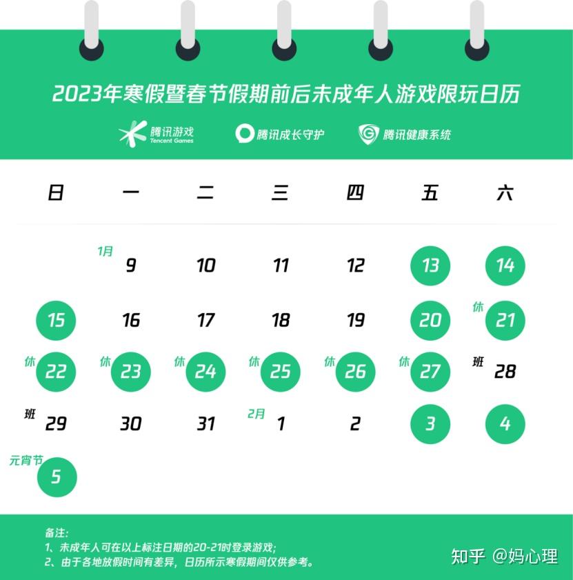 1月9日,腾讯游戏发布了寒假暨春节假期期间