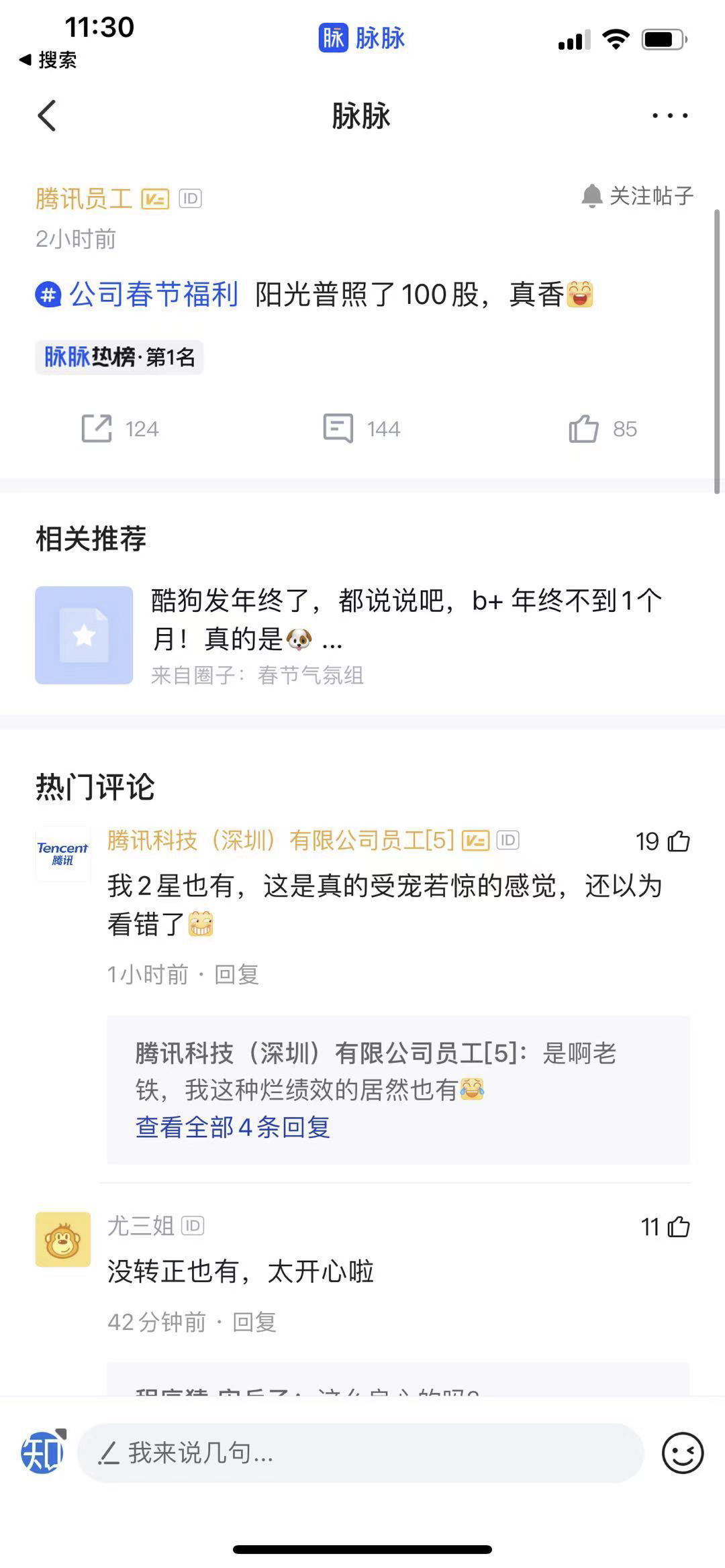2021 年腾讯奖励部分员工 100 股,企业这类奖励对员工的 ...