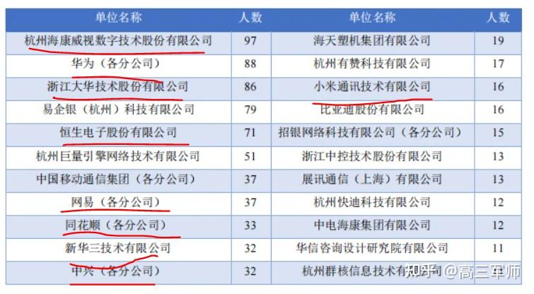杭州电子科技大学:就业业单位,海康97人,大华86人,恒生71人,网易37人,新华三32人,都是杭州本地的大公司!(我毕业就去杭州工作,这里面单位,我在2家都工作过,另外3家也都打过交道。都是业内知名企业。)