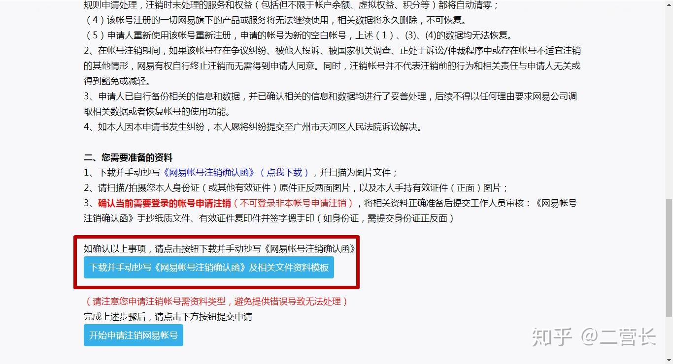 然后,在上述页面内仔细阅读注销须知,并下载《网易账号注销确认函》附件,该附加为压缩包,下载后解压会得到相关模板,按照网易公司要求手写确认函并准备相关材料;