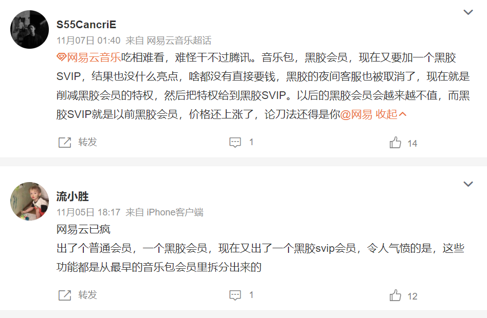 也有用户表示不满。有人在相关新闻下评论称,“咋搞成拼多多模式了”,也有人认为“过度商业化”会给用户带来不好的体验。“你们想过为什么一开始用户会想用网易云吗?这样真的会失去很多老用户的!”